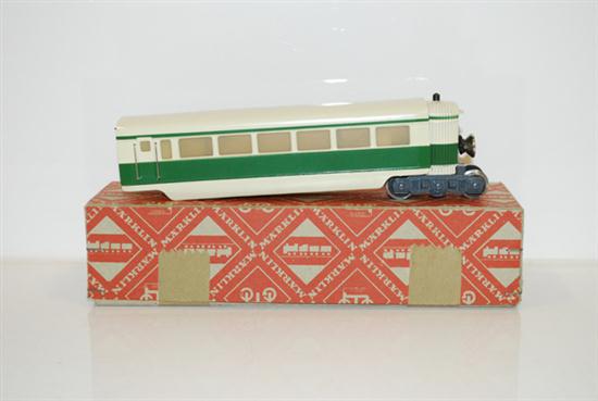 MARKLIN HO GAUGE ST 800 MT RAILCAR, CIRCA 1950-54, EXTENSION PART FOR ST 800, IVORY AND GREEN (E BOX VG-E)