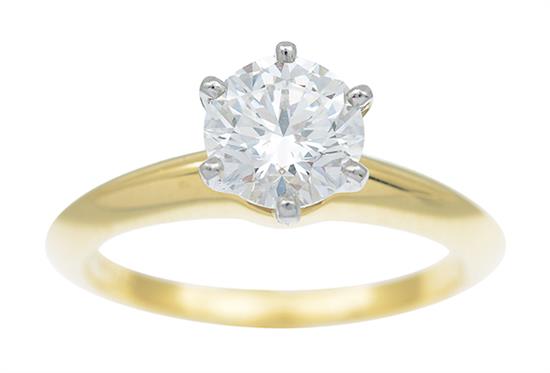 The round brilliant cut diamond of 1.10cts, mounted in 18ct gold, ring size K.