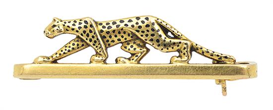 Finely modelled in 18ct gold with black enamel detail, signed Cartier Paris with French export mark, boxed.