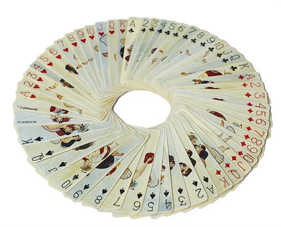 A FULL DECK OF INDIAN EROTIC KAMA SUTRA PAINTED IVORY PLAYING CARDS, EARLY 20TH CENTURY