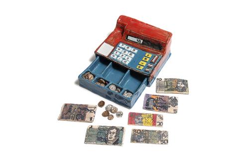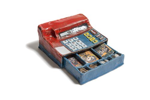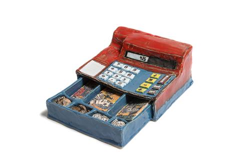 Lisa Reid is an accomplished multidisciplinary artist working in ceramics, painting, drawing, printmaking, digital media and artist zines. Often utilising preliminary workings of an image as a blueprint for her work Reid's attention to detail is unparalleled, which is particularly evident in her ceramic sculptures. These often comprise of multiple components and are meticulously constructed over a long period. The jewel in the crown of this auction is her 2018 artwork titled The Old Fashioned Cash Register with the Old Paper Dollar Notes and Coins: it's a showstopper. It's such a significant artwork that it deserves to be acquired by a generous collector and gifted to an art museum specialising in ceramics. Reid has worked as an artist in the Arts Project studio since 2002 and had her first solo exhibition in 2015. She has been represented in major exhibitions nationally and internationally, including Painting. More Painting at Australian Centre for Contemporary Art. Her work is held in numerous public collections including the National Gallery of Australia and National Gallery of Victoria, as well as private collections worldwide.