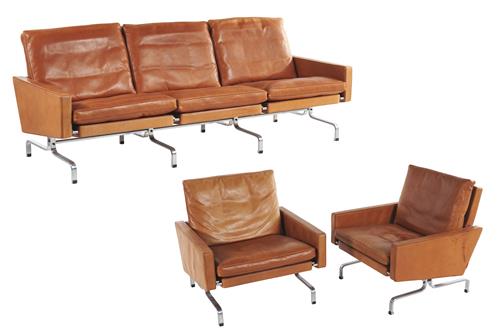 POUL KJAERHOLM 'PK 31' SETTING OF THREE SEAT SOFA & PAIR OF ARMCHAIRS FOR FRITZ HANSEN