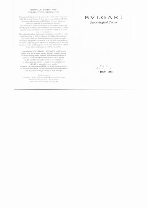 a Bulgari Gemmological Center Gem Report numbered B390 - 1858, dated 16 November 2004.