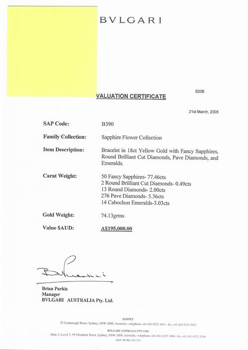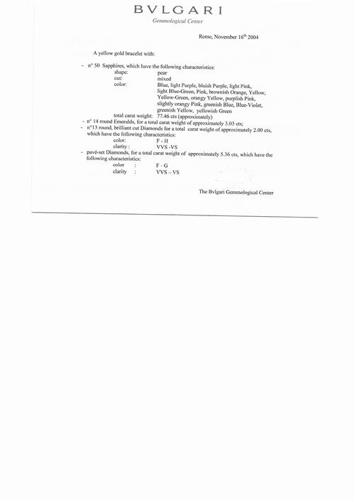 a Bulgari Valuation Certificate, dated 21 March 2005.