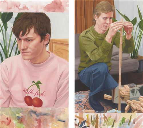 HOWARD ARKLEY AND JUAN DAVILA (1951-1999; born 1946) Interior with Built-in-Bar 1992 gouache on paper with silkscreen detailing diptych
