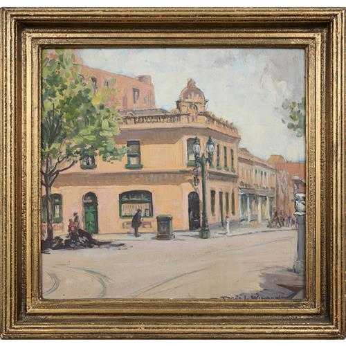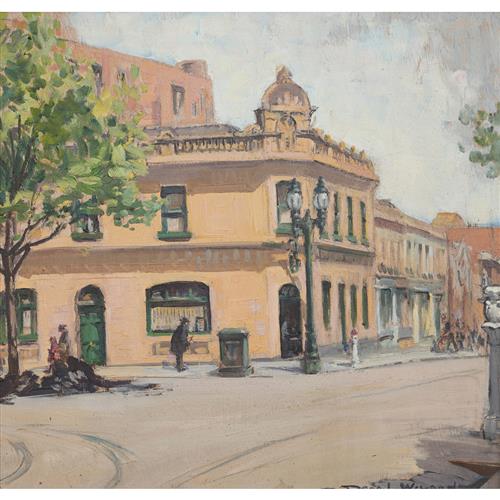 CLARICE BECKETT (1887-1935) Soft Evening Study for Princes Bridge c.1930 (verso) oil on board, double-sided 20.5 x 20.5cm