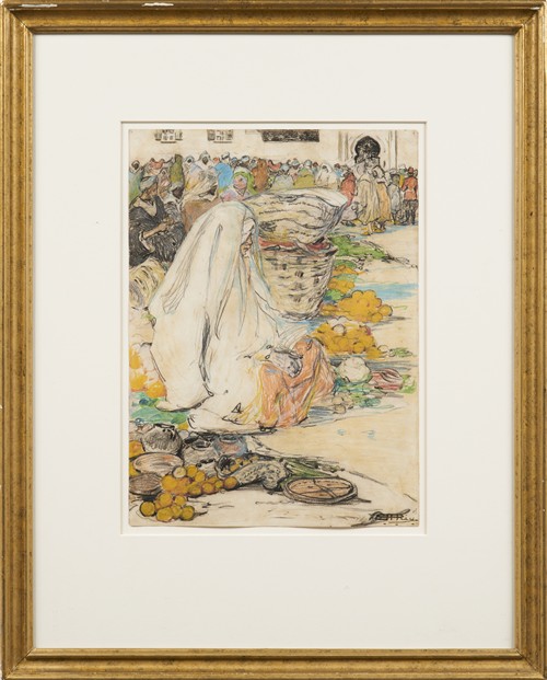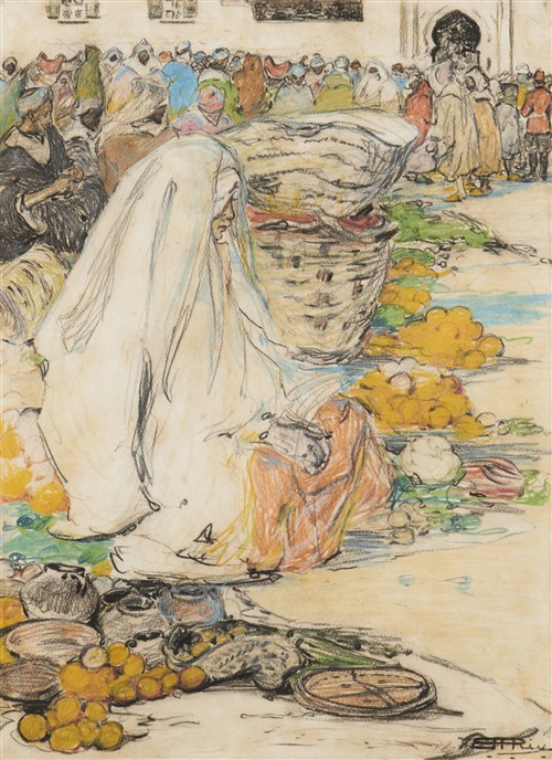 HILDA RIX NICHOLAS (1884-1961) The Fruitseller, Etaples, France c.1912-1914 coloured pastel on paper 37 x 26.5cm (sheet, reveal)