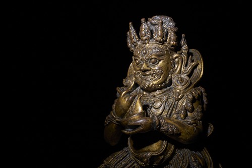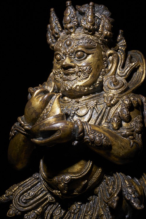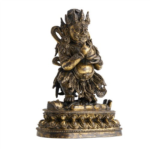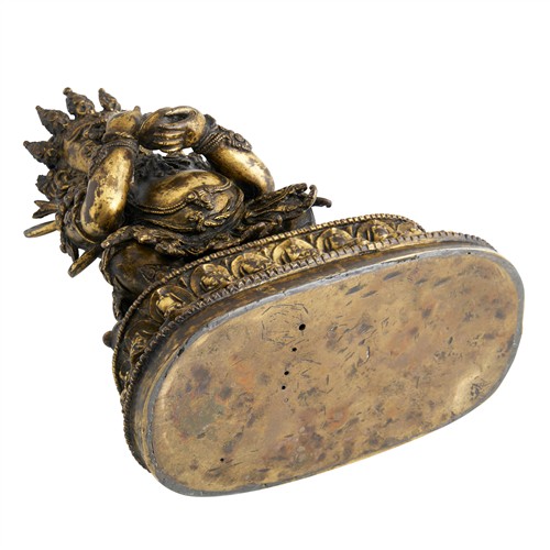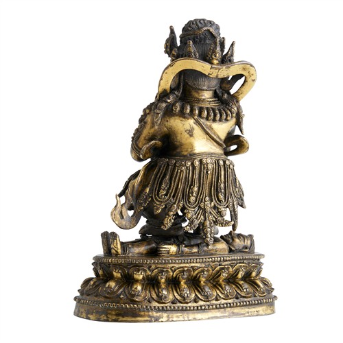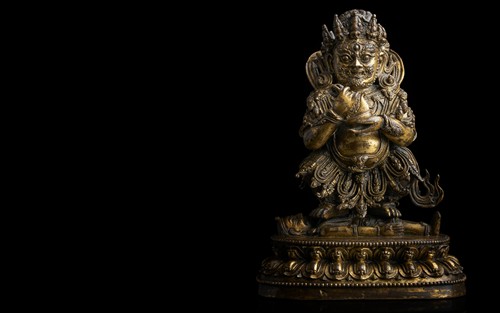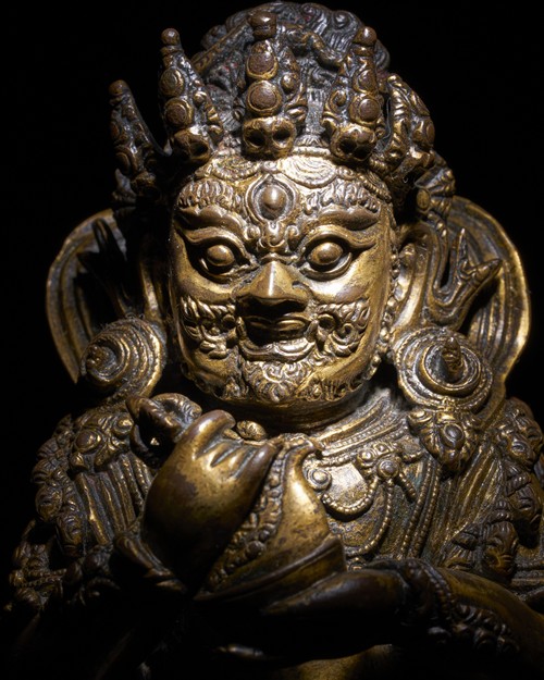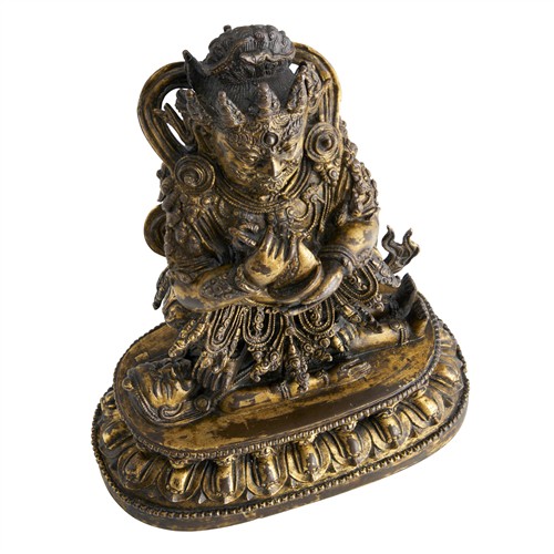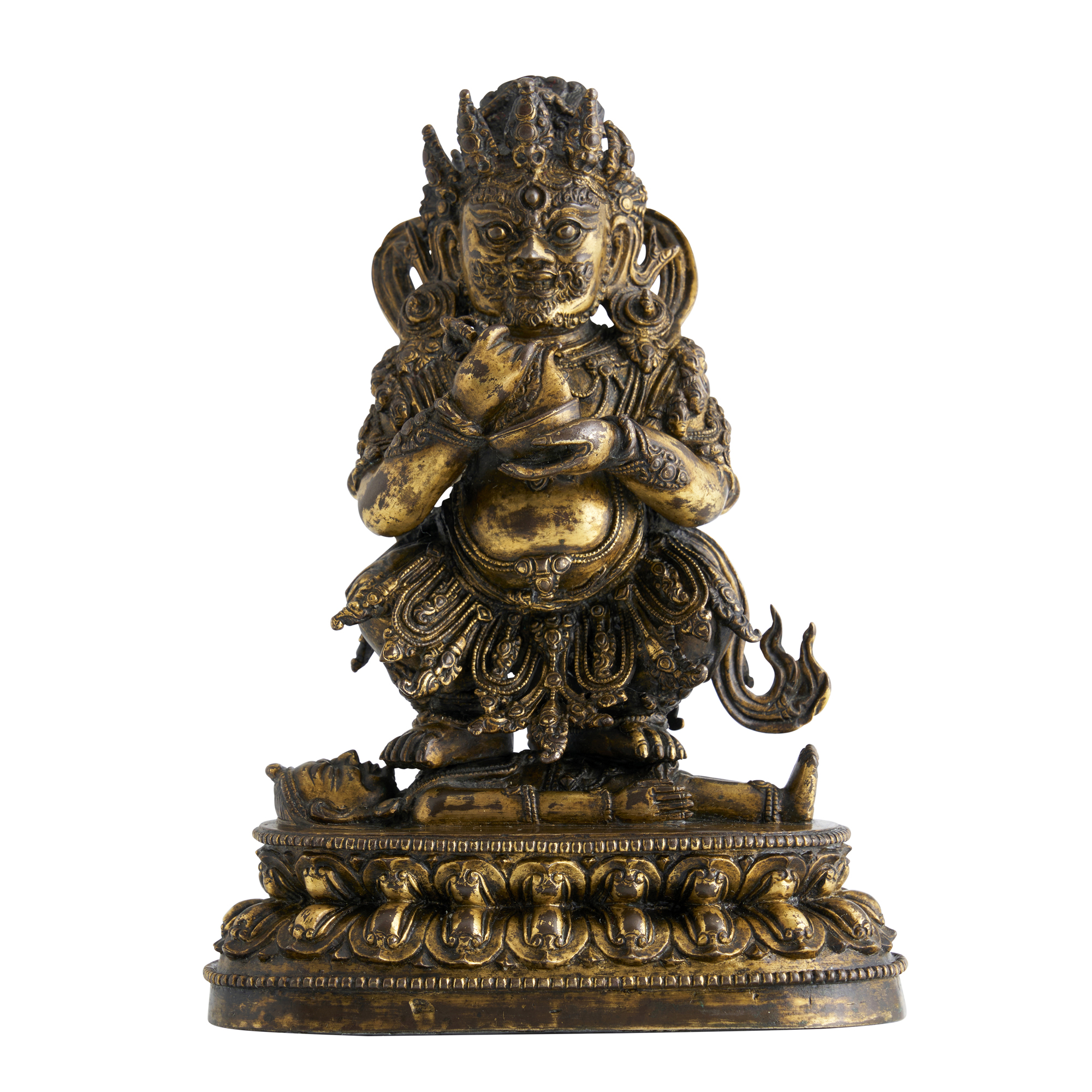 A RARE AND EXCEPTIONAL CHINESE GILT-BRONZE SEATED FIGURE OF PANJARNATE MAHAKALA, MING DYNASTY, YONGLE/XUANDE PERIOD, EARLY 15TH CENTURY