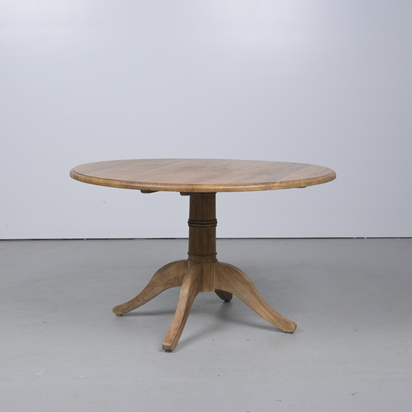 A TEAK CIRCULAR DINING TABLE BY SIKA MICHAL (74CM H X 120CM DIA) (THIS ITEM MUST BE REMOVED BY PROFESSIONAL CARRIERS OR CLIENTS. LEONARD JOEL STAFF CANNOT ASSIST WITH CARRYING OR DELIVERY OF THIS ITEM)