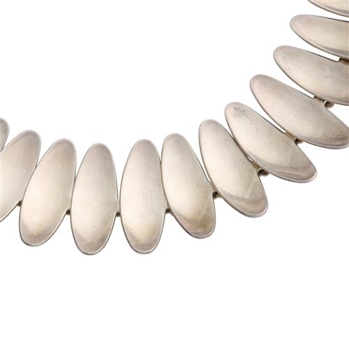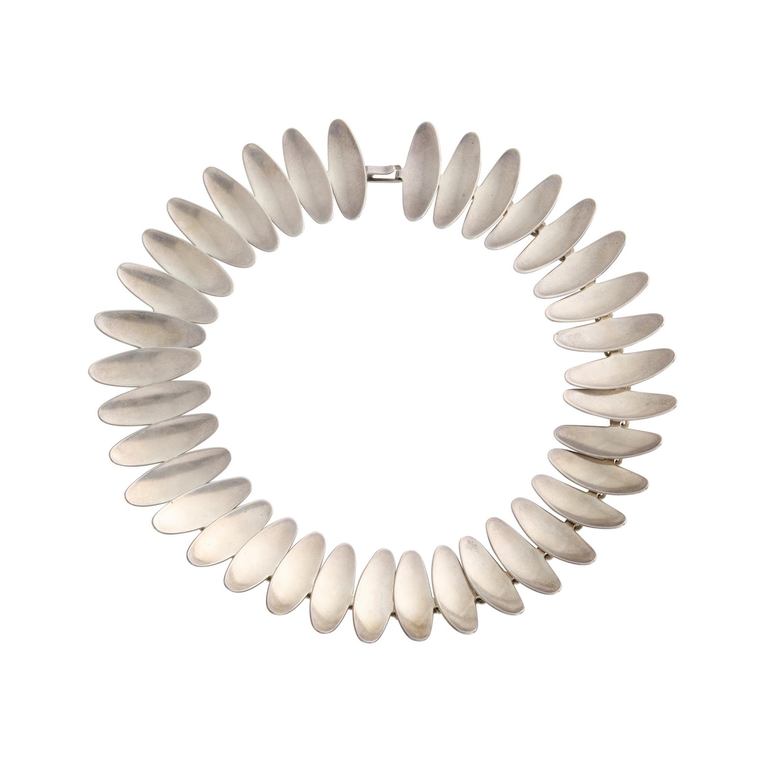 Composed of a line of concave oval links, mounted in sterling silver. inner circumference 410mm, maker's mark for Anton Michelsen.