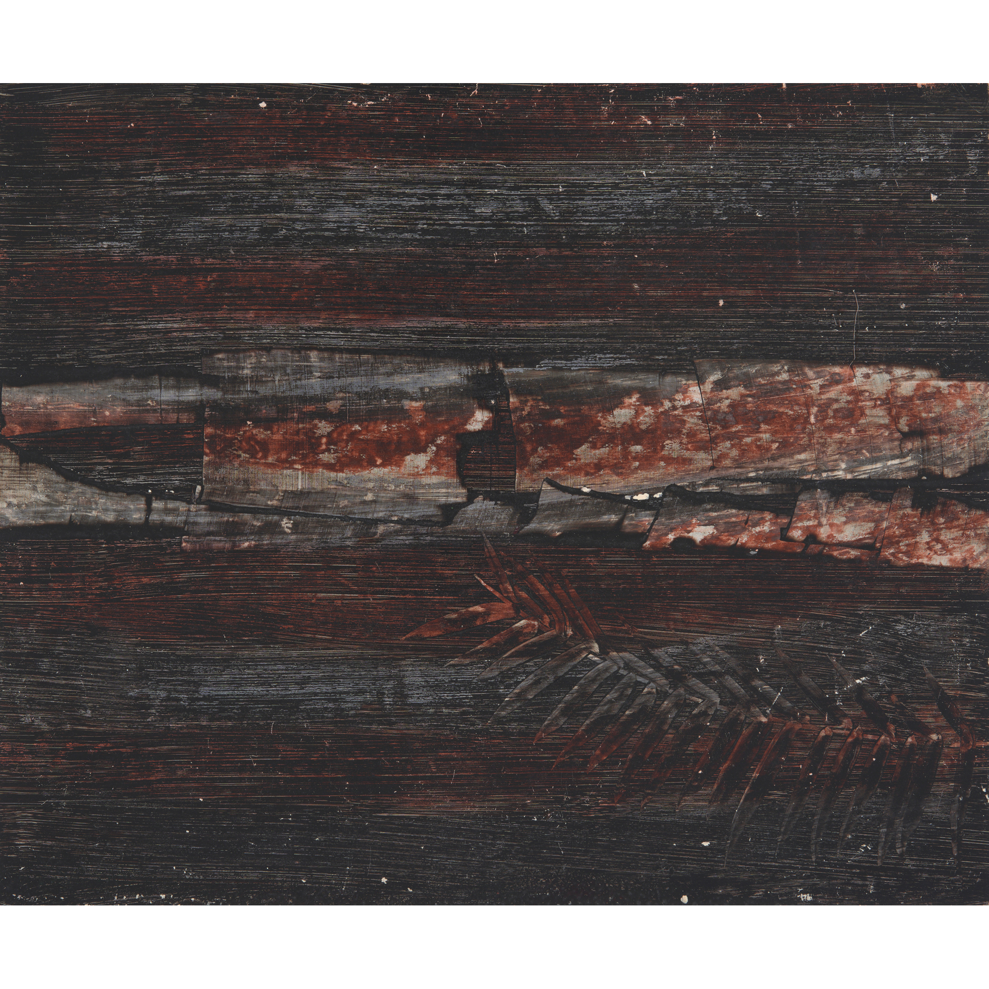 SIDNEY NOLAN (1917-1992) Die Entfuhrung aus dem Serail c.1987 spray enamel and mixed media on paper 57.5 x 107cm (sheet)