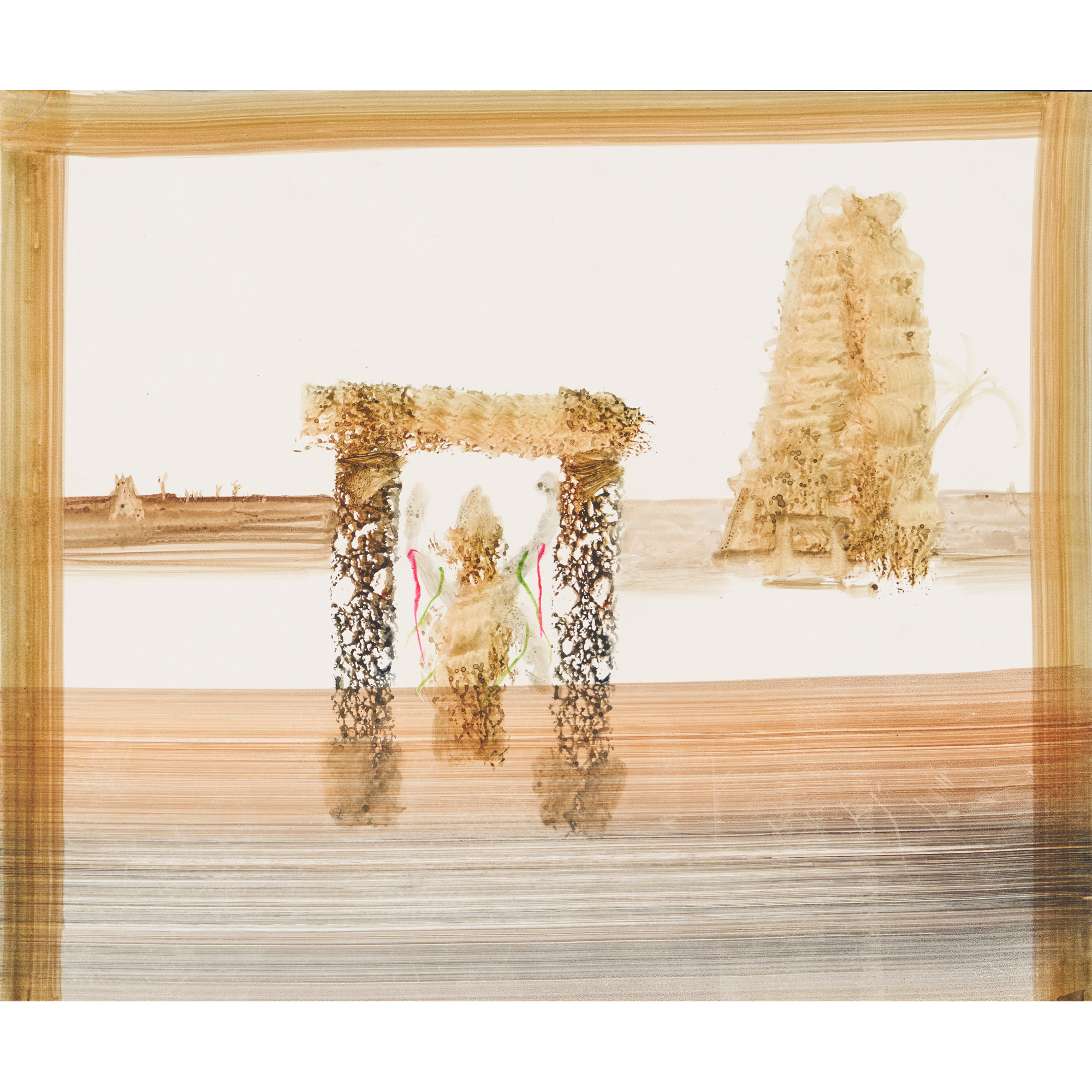SIDNEY NOLAN (1917-1992) Landscape and Sea c.1960 mixed media on paper 52 x 64cm