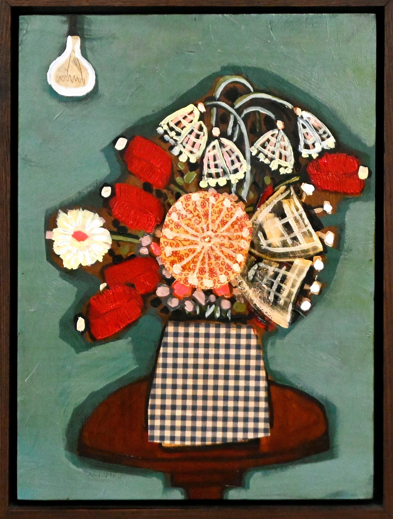 ACRYLIC, WALLPAPER, FABRIC AND SHELLAC ON BOARD, SIGNED AND TITLED VERSO, 40 X 30CM, FRAME SIZE: 43.5 X 33.5CM