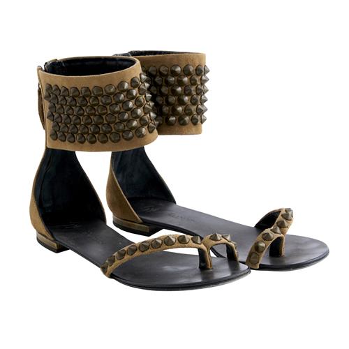 GIUSEPPE ZANOTTI X BALMAIN, PAIR OF KHAKI STUD SANDALS, SS2010