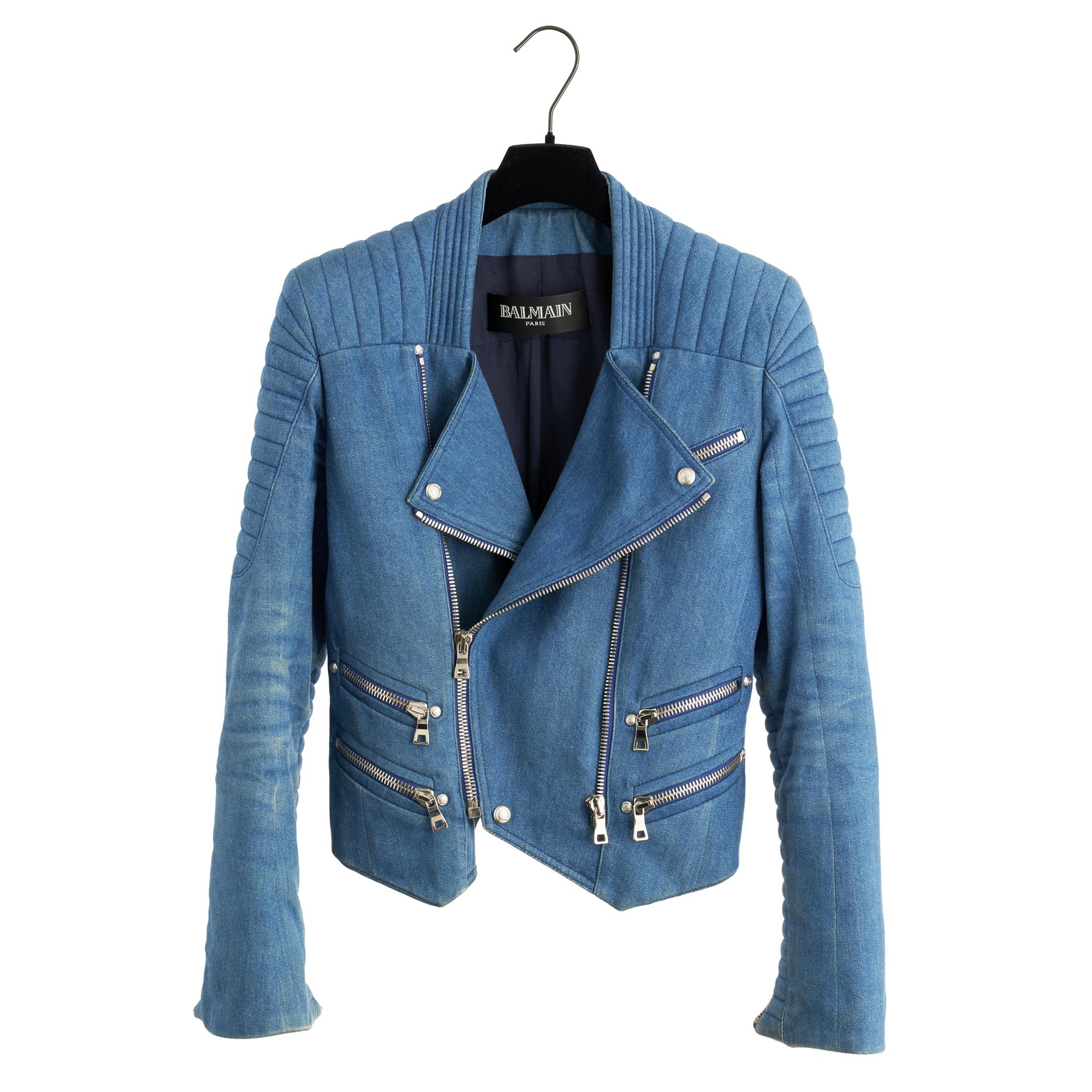 BALMAIN, INDIGO DENIM BIKER JACKET, OLIVIER ROUSTEING ERA SS13