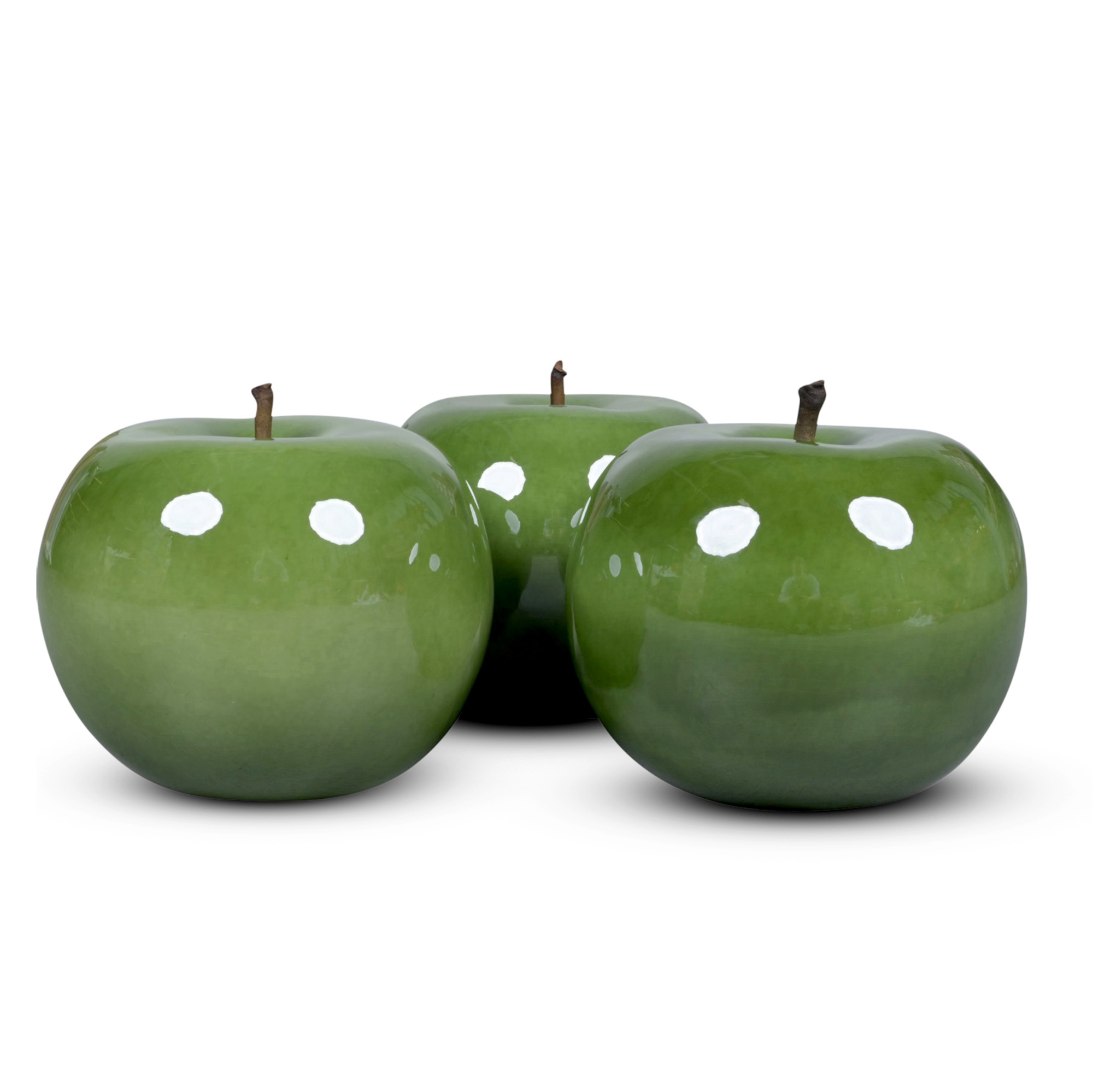 A GROUP OF THREE BULL & STEIN GREEN APPLE PORCELAIN SCULPTURES BY LISA PAPPON
