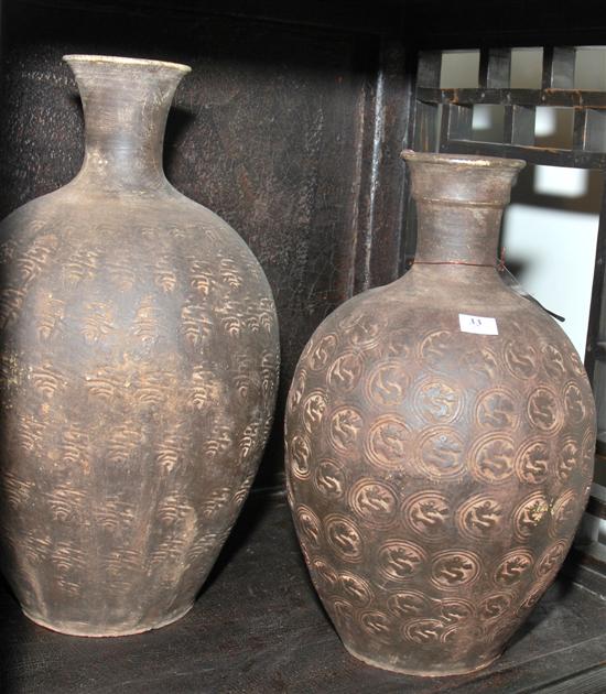 TWO SIMILAR MATT GLAZED EARTHENWARE WATER CONTAINERS