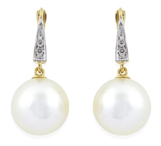 A PAIR OF SOUTH SEA PEARL AND DIAMOND EARRINGS