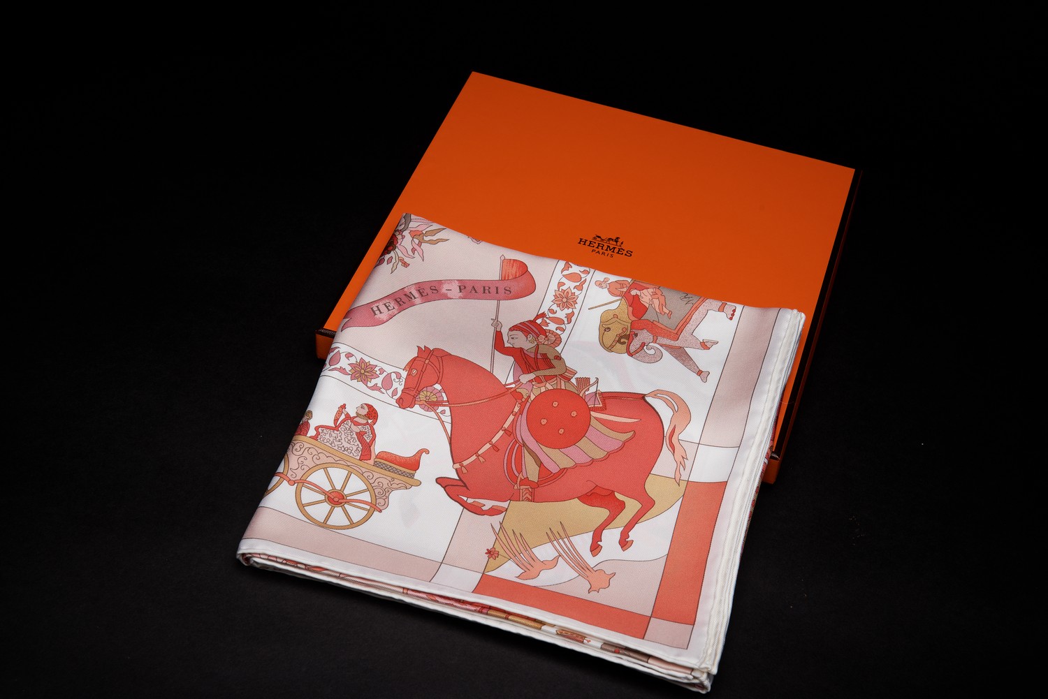 The 'Fantaisies Indiennes' design by Loic Dubigeon, on pink and white background, 90cm square, boxed.
