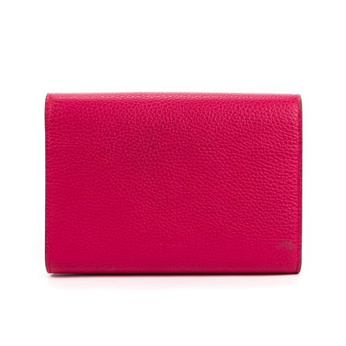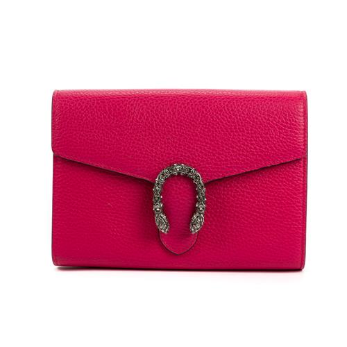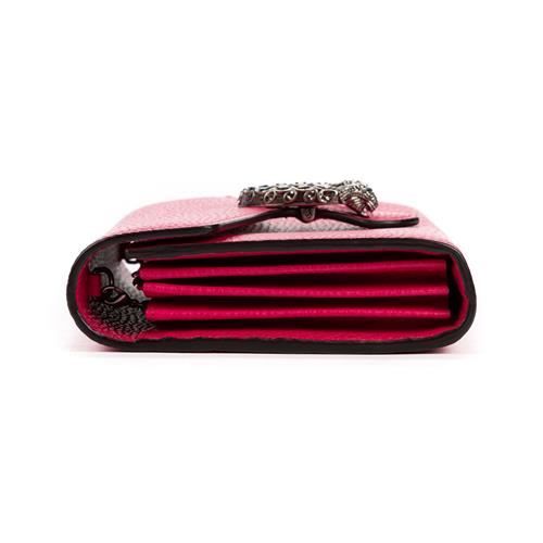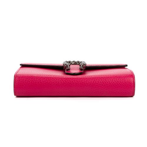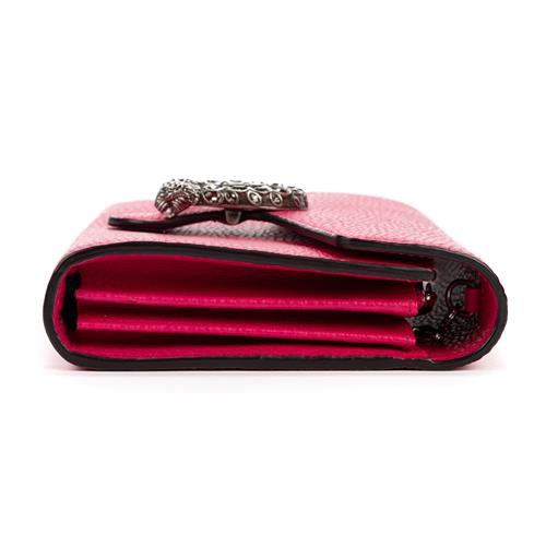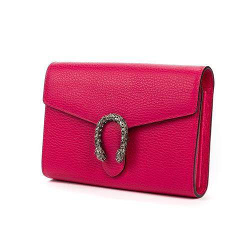 Styled in dark pink leather with a silver strap and tiger head closure, 20 x 15 x 4cm.