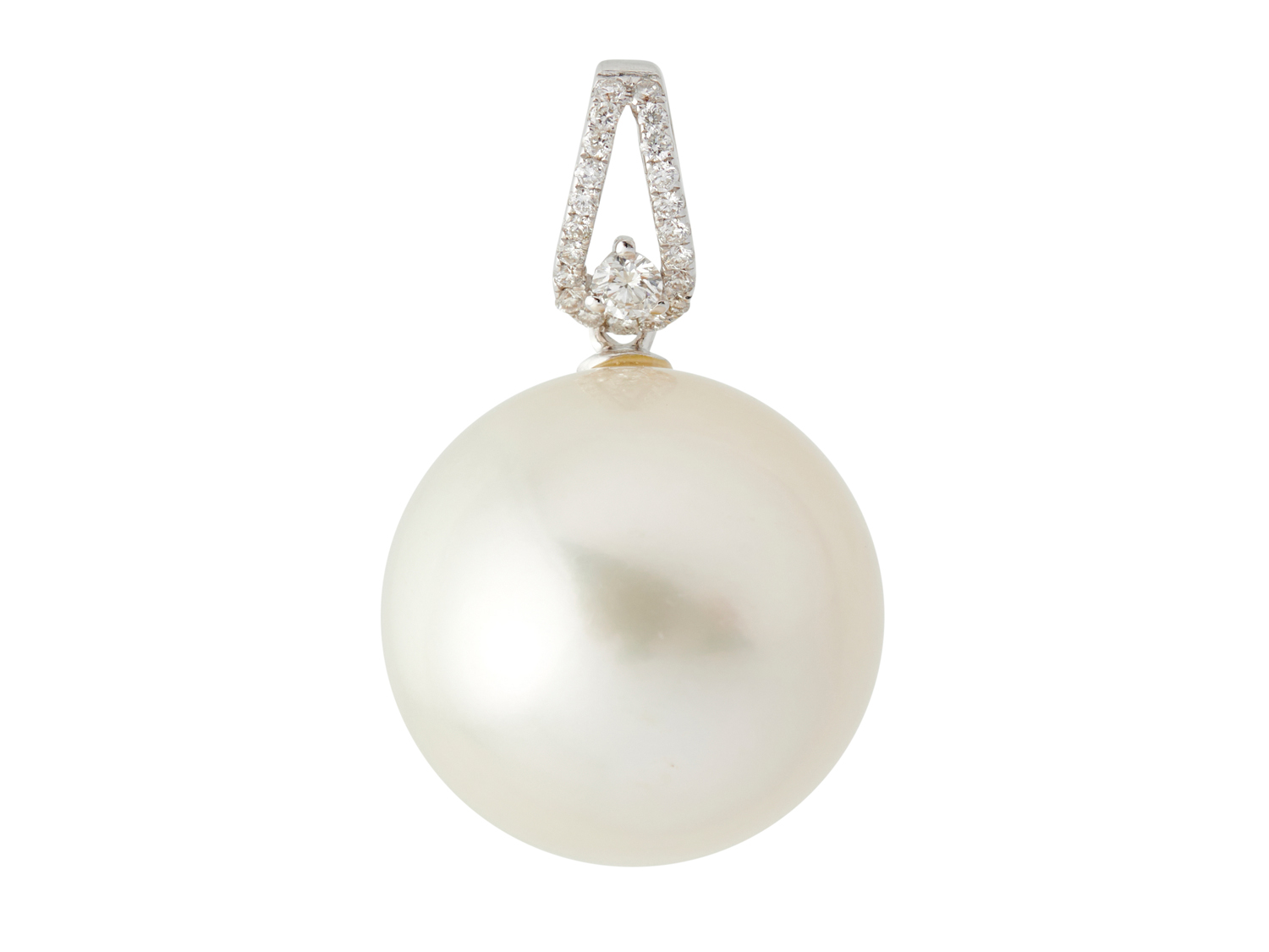 18CT WHITE GOLD, SOUTH SEA PEARL AND DIAMOND PENDANT