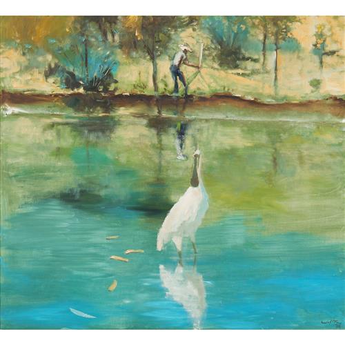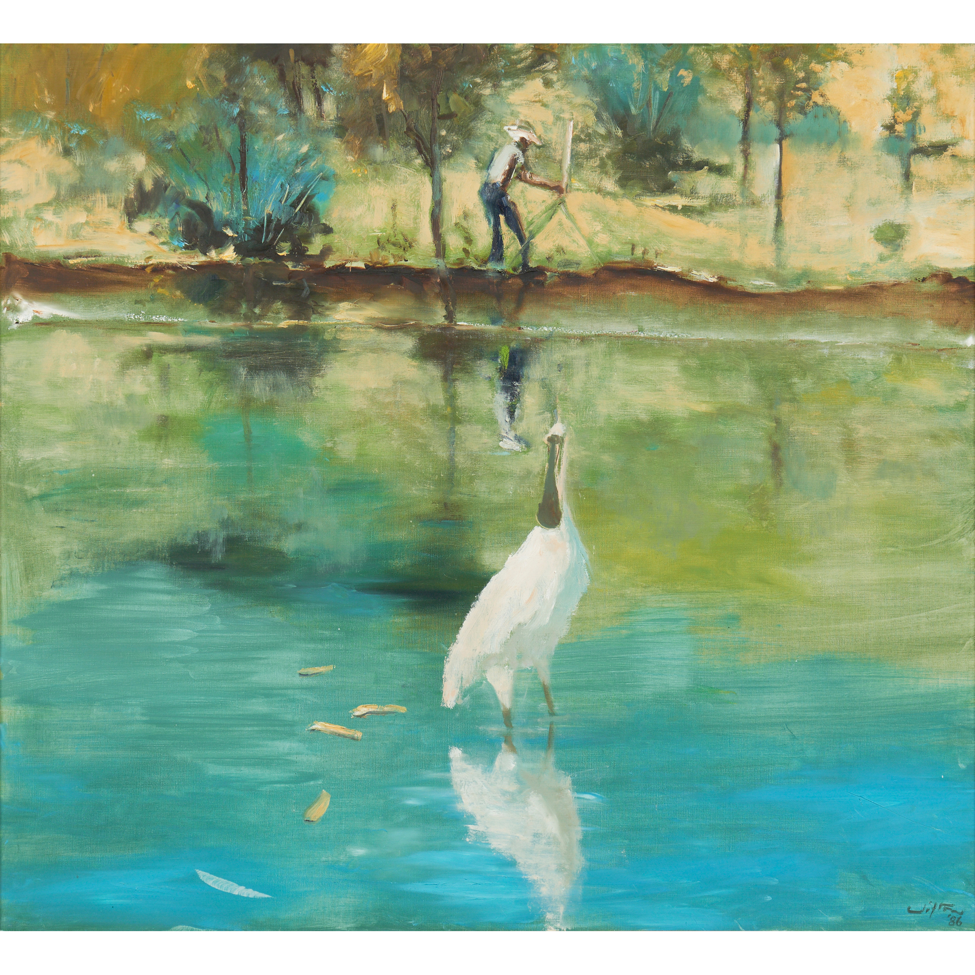 The Painter Rick Amor and a Royal Spoonbill 1986