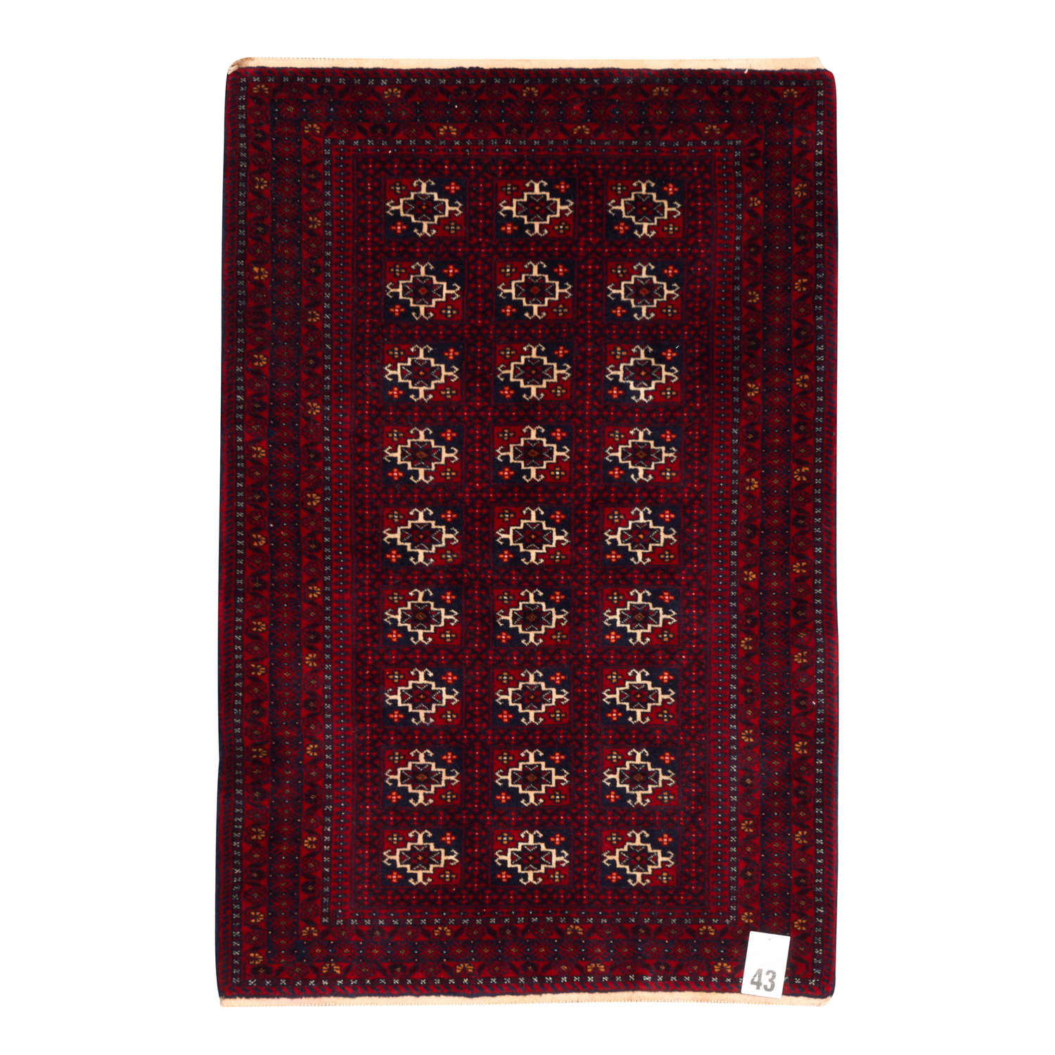 A FINE TRIBAL PERSIAN TURKOMAN HEYDARI RUG. 100% WOOL PILE, WITH APPROXIMATELY 350,000 KNOTS PER SQUARE METRE. FINELY HAND-KNOTTED TRIBAL WEAVE WITH TRADITIONAL DESIGN OF ALL-OVER TURKOMAN GUL MOTIFS IN A VERTICAL PATTERN SET WITHIN A RED FIELD, WITH TONES OF CREAM; NAVY AND GOLD. SIZE: 165 X 110 CM ORIGIN: PERSIA – RRP: $1,800 DOCUMENTATION OF AUTHENTICITY INCLUDED.