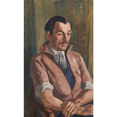 DORRIT BLACK (1891-1951) Portrait of Rawi Bhavilai c.1950 oil on bitumen paper on board 48.5 x 40cm (61.4 x 53cm framed)