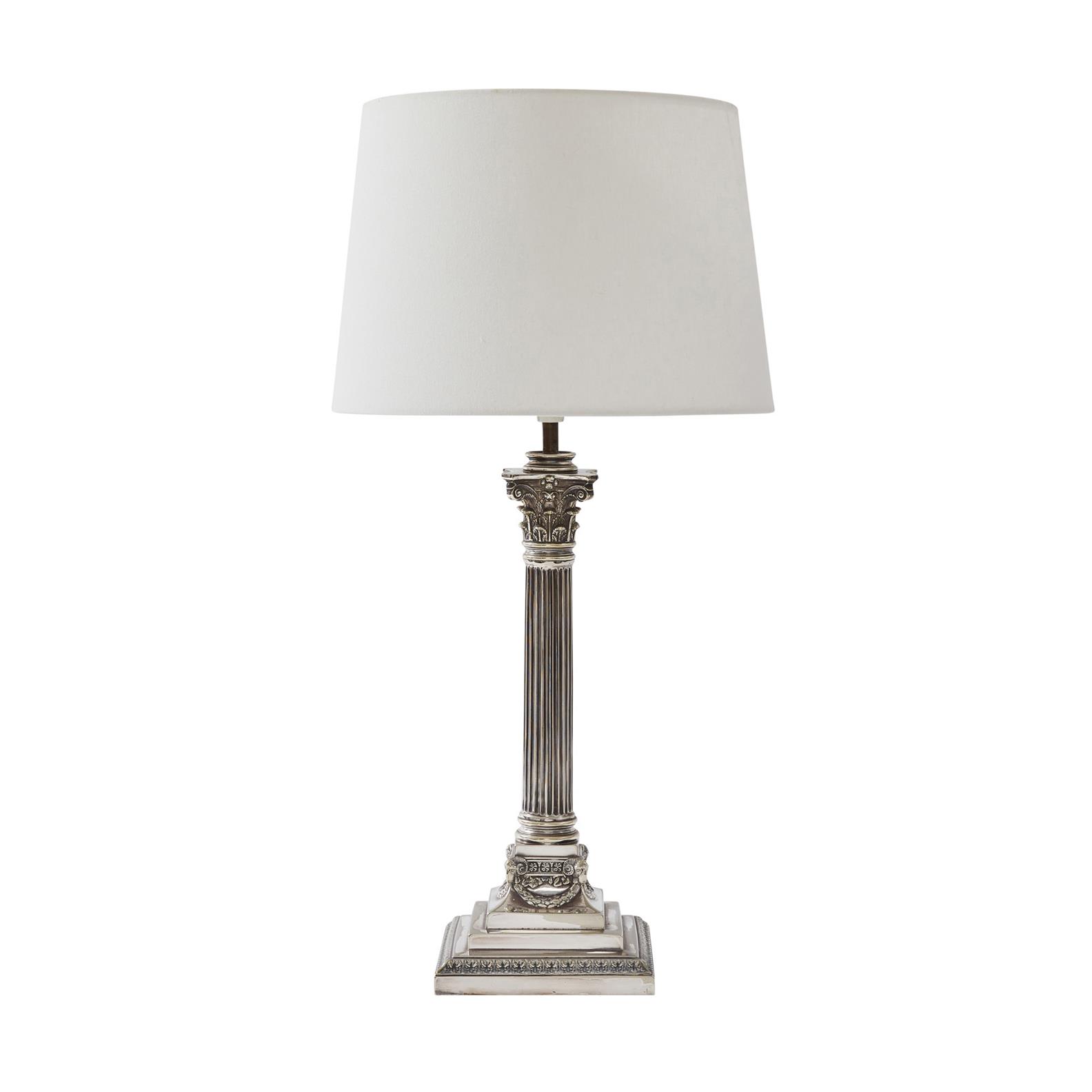 AN EDWARDIAN PRESENTATION SILVER-PLATED CORINTHIAN COLUMN TABLE LAMP