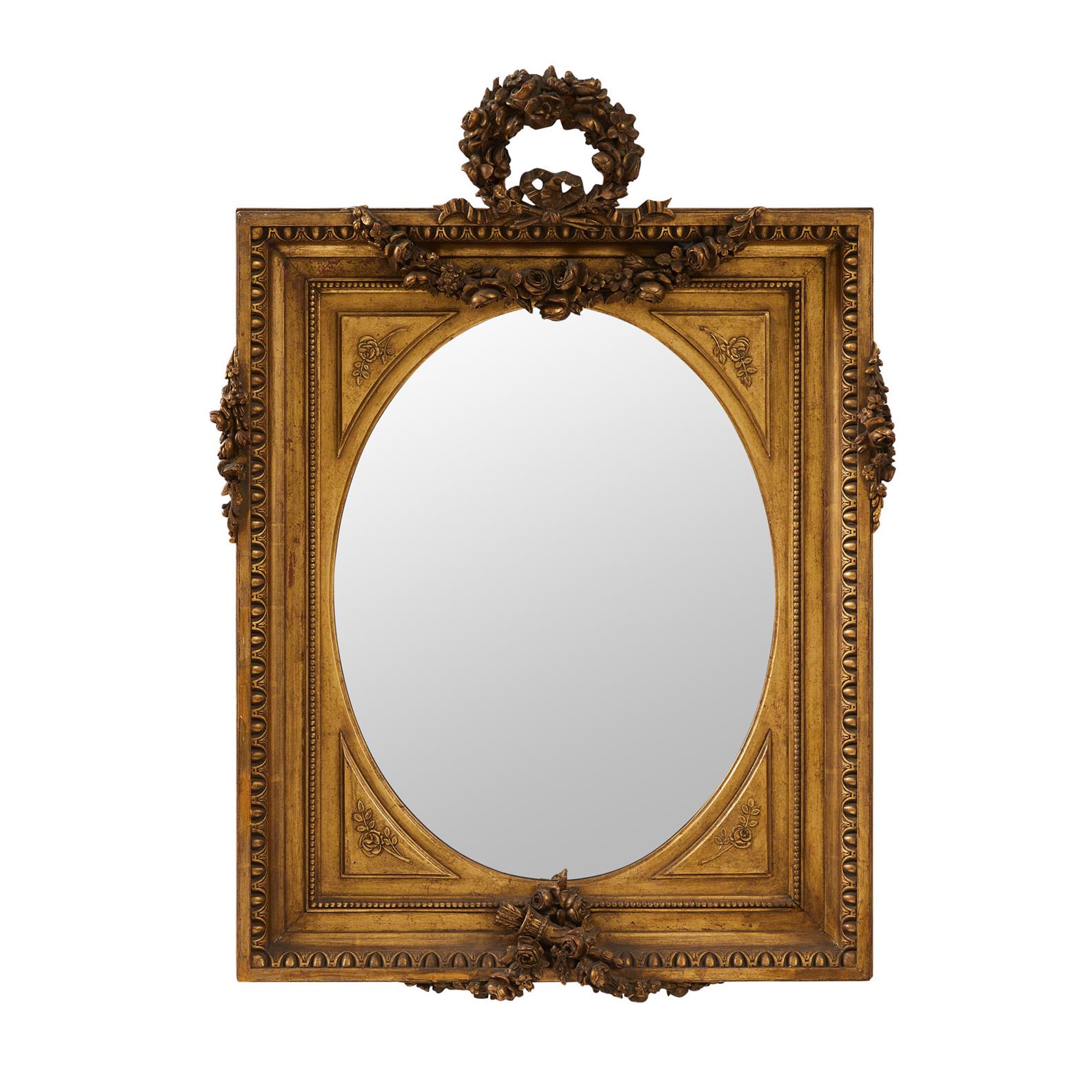 Late 19th century, the oval plate in a gilt composition frame with a floral wreath cresting above pendant flower swags and cupid's quiver and swagged apron, within egg and dart moulded frame.