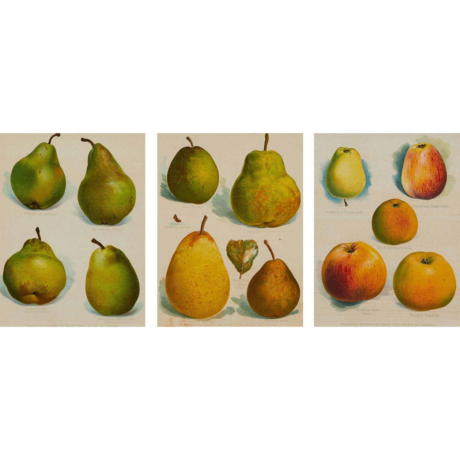 Overall discolouration and foxing to each print, one with some staining to lower edge and the frame with some green paint marks to lower right edge.