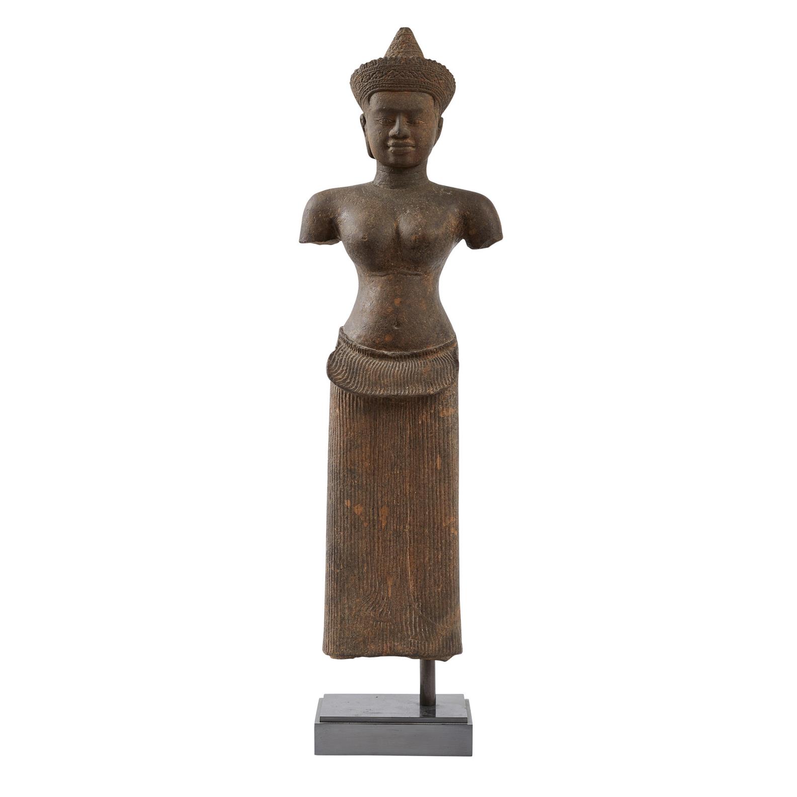 A KHMER BAPHUON STYLE SANDSTONE TORSO OF UMA