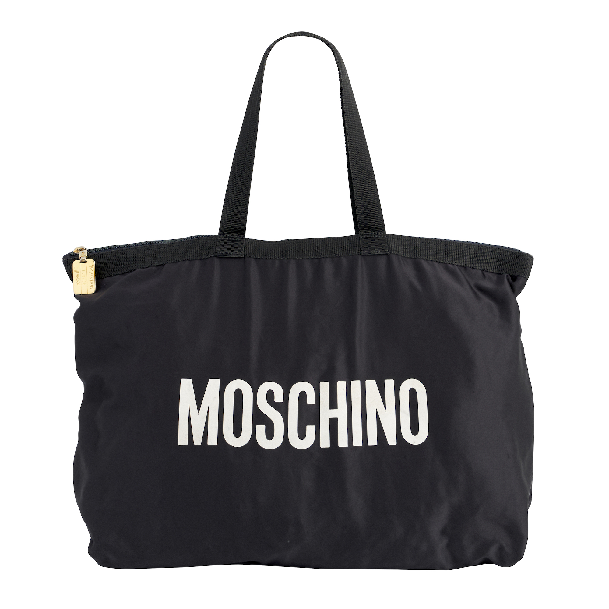 Styled in black cotton with grosgrain shoulder straps, featuring full zip closure, fabric zip pouch attached internally, 36 x 52 x 7cm.