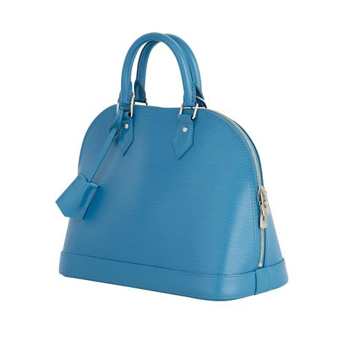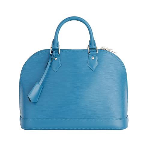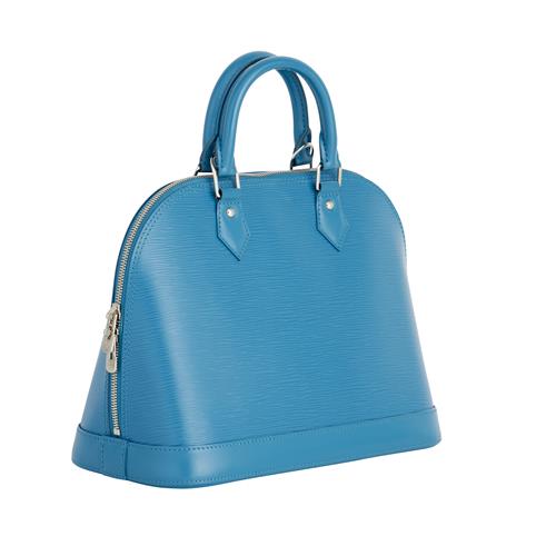 Styled in Cyan Epi leather with conforming leather trim and silver tone hardware, 23 x 31 x 15cm.