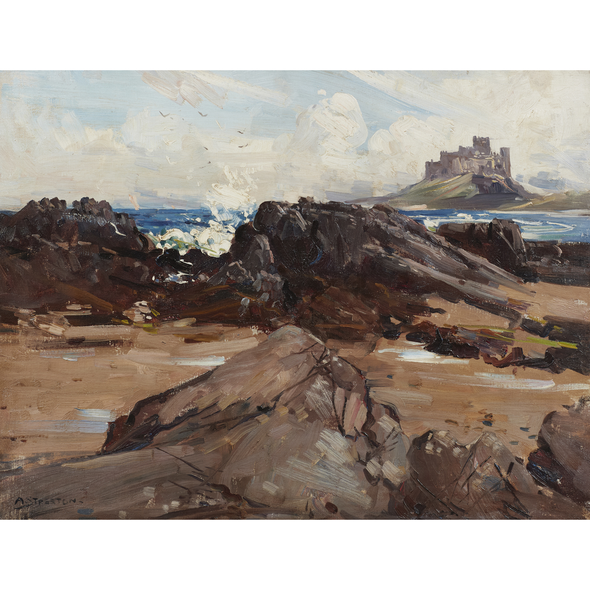 Arthur Streeton, Bamboro Castle, Northumberland 1908, watercolour on paper, 23 x 31cm, Mossgreen Auctions, Melbourne, 29 August 2016, lot 35; Galbally, A., Arthur Streeton, Lansdowne Press, Melbourne, 1979, p. 77, cat. no. 24 (illus.)