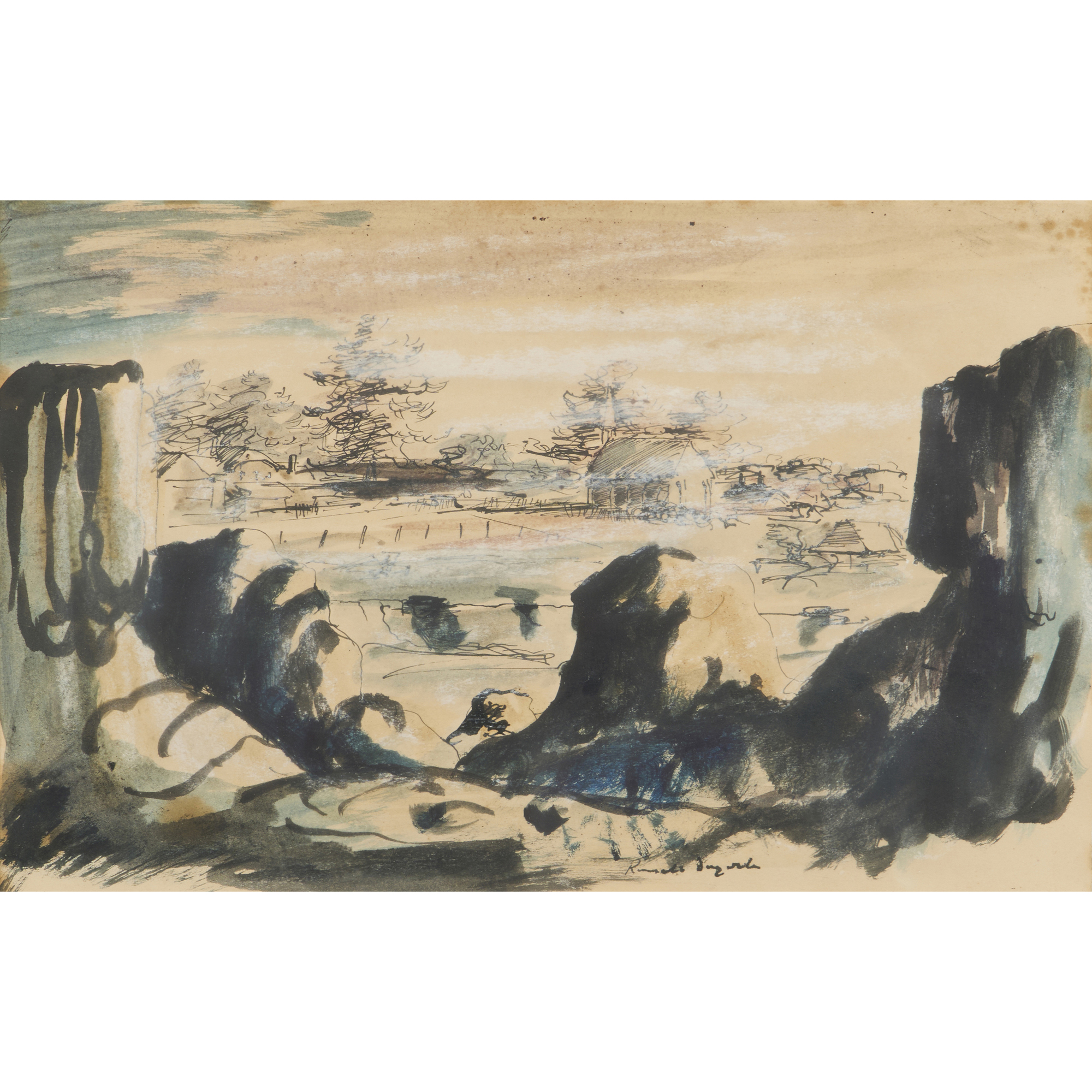pen, ink and wash on paper