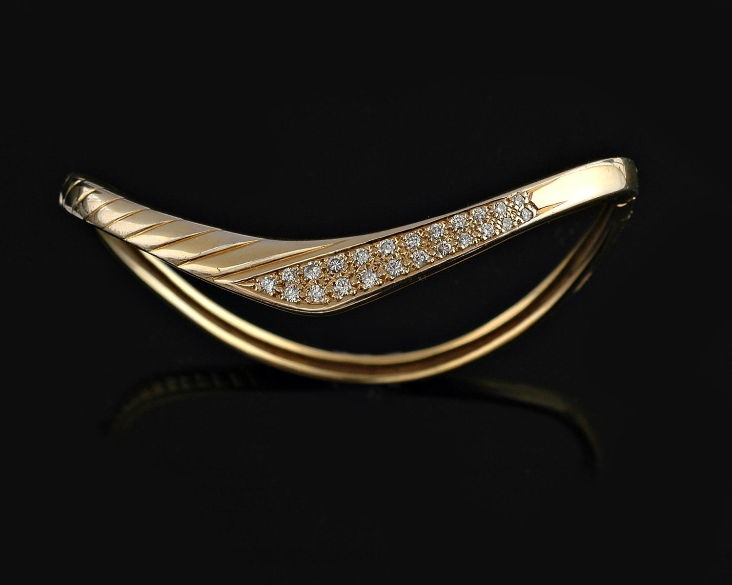 The abstract hinged bangle set with twenty three round brilliant cut diamonds totalling 0.50cts, all in 14ct gold, total weight 22.9gms.