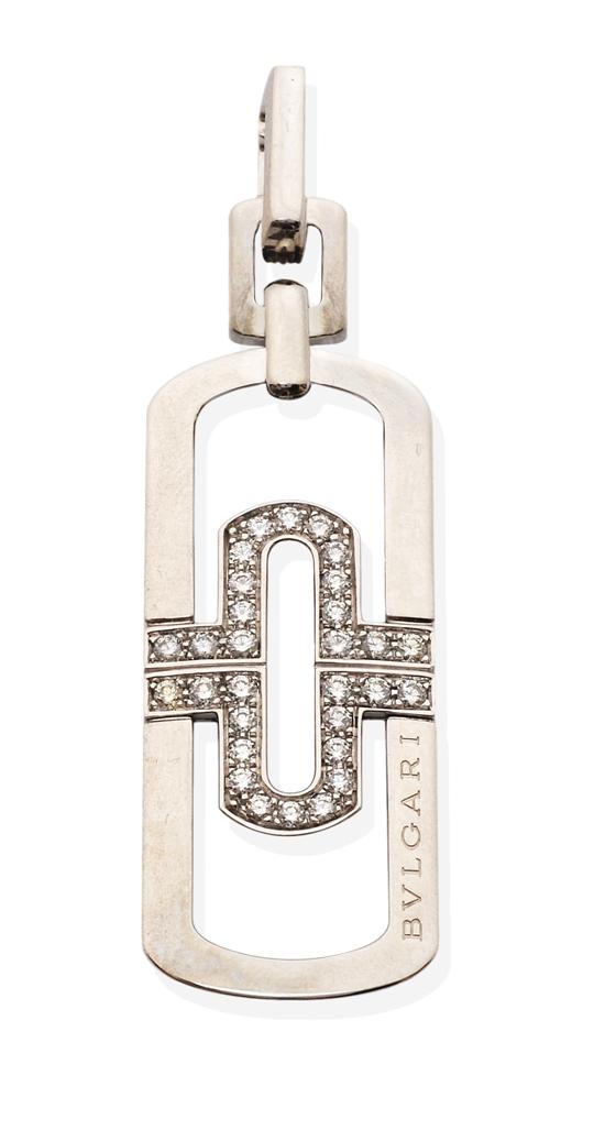 From the 'Parentesi' range, the open rectangular plaque pave set with round brilliant cut diamonds, in 18ct white gold and stainless steel.