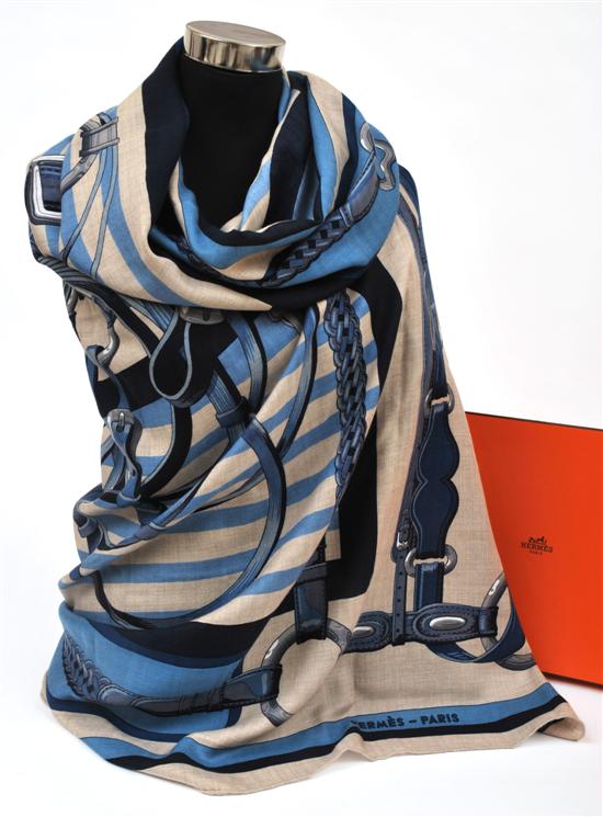 The 'Coaching' design in shades of blue on a grey background, 140cm square, with original box.