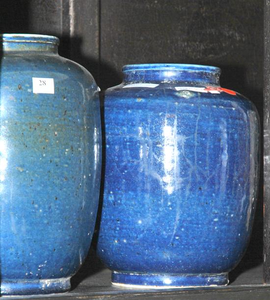 TWO CHINESE BLUE GLAZED EARTHENWARE JARS Each of baluster form, the tallest 30cm high.
