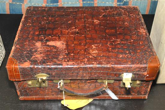 A VINTAGE CROCODILE SKIN TRAVELLING CASE