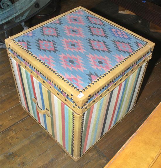 A TAPESTRY UPHOLSTERED TRAVELLING TRUNK