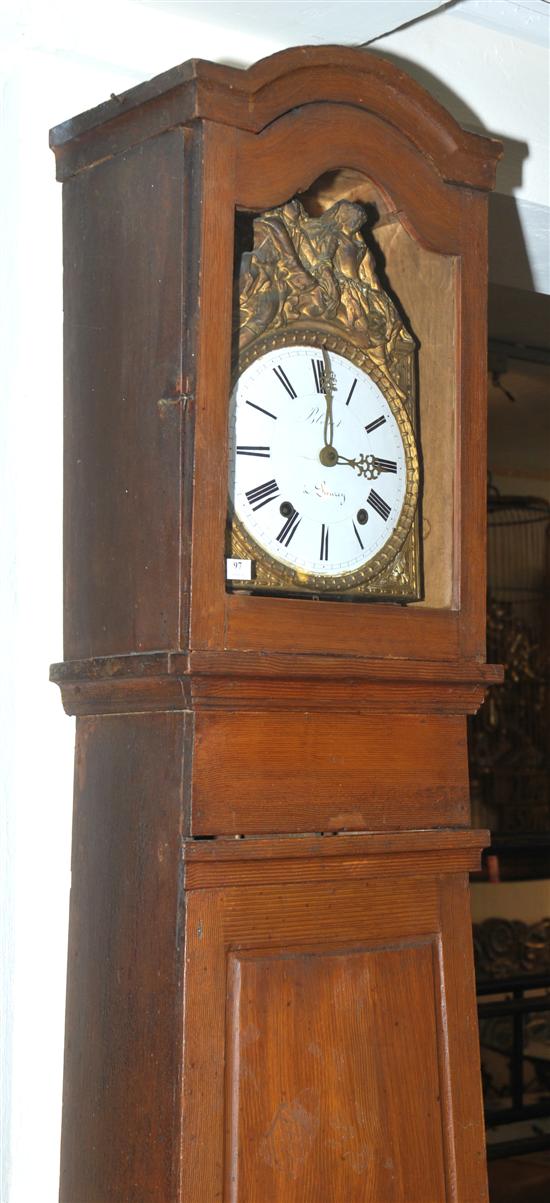 A FRENCH PROVINCIAL PINE CASED LONG CASE CLOCK