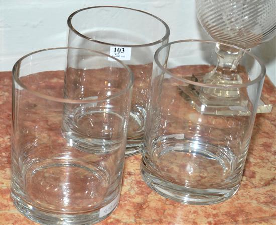 A GROUP OF THREE CYLINDRICAL GLASS VASES