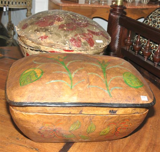 TWO PAINTED PAPIER MACHE LIDDED CONTAINERS