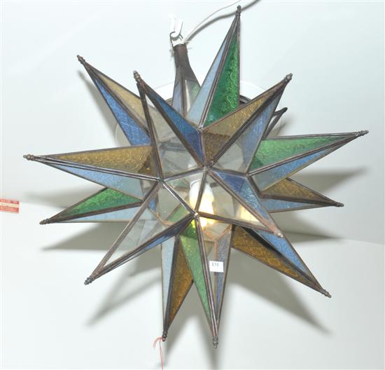 A COLOURED GLASS LIGHT FITTING IN THE FORM OF A STARBURST 65cm high.
