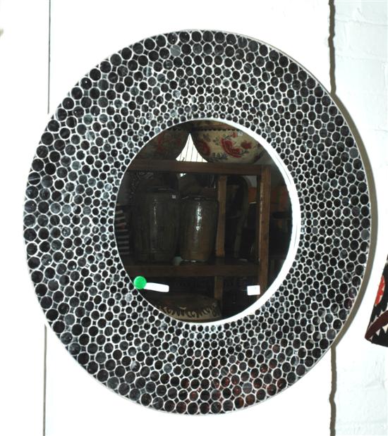 The plate within a surround inlaid with repeating reflective discs, 76.5cm diameter.