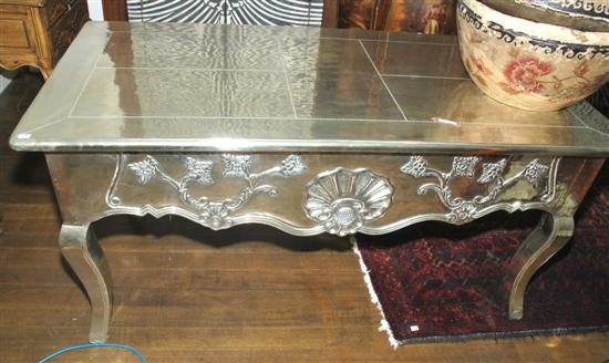 A LOUIS XV STYLE SILVER FOIL OVERLAID BUREAU PLAT