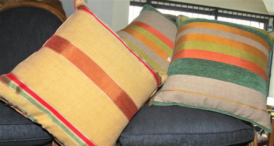 A GROUP OF THREE MULTICOLOURED AND STRIPED SCATTER CUSHIONS