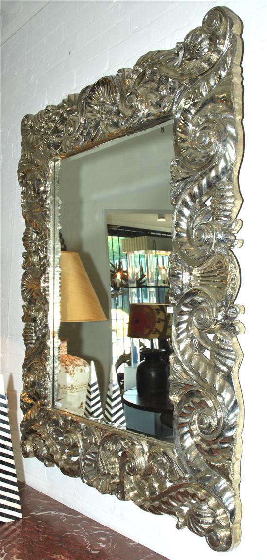 The bevelled rectangular plate within a shell carved and pierced surround overlaid in silver foil, 149 x 121cm.